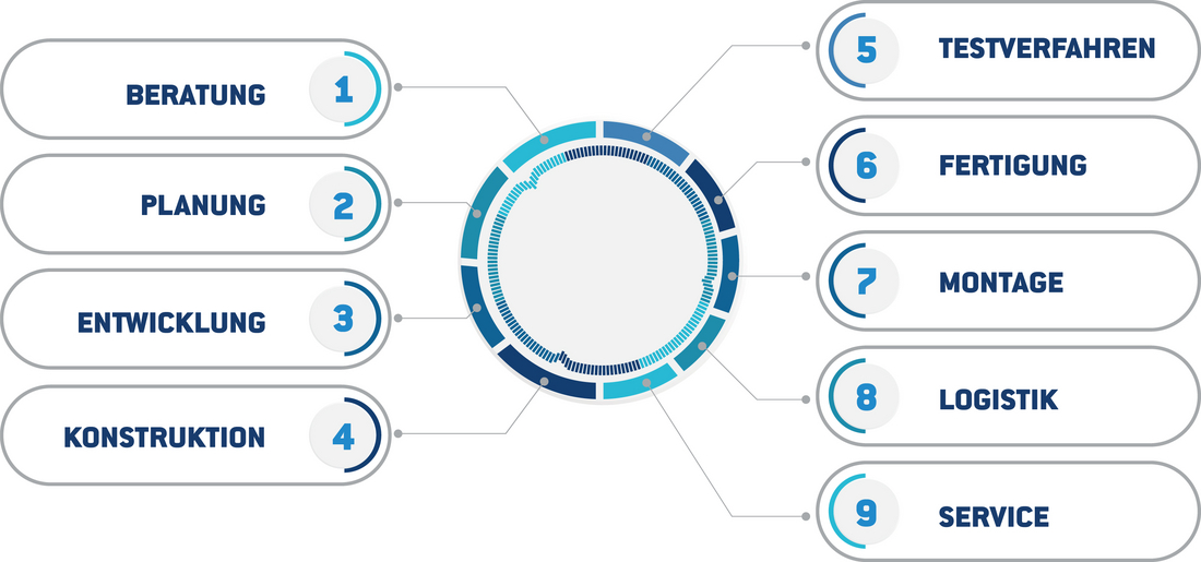 In der Entwicklung kundenspezifischer Lösungen stellen wir sicher, dass jedes Projekt im Sonderanlagenbau mit hoher Präzision, Terminsicherheit und Qualität durchgeführt wird.
